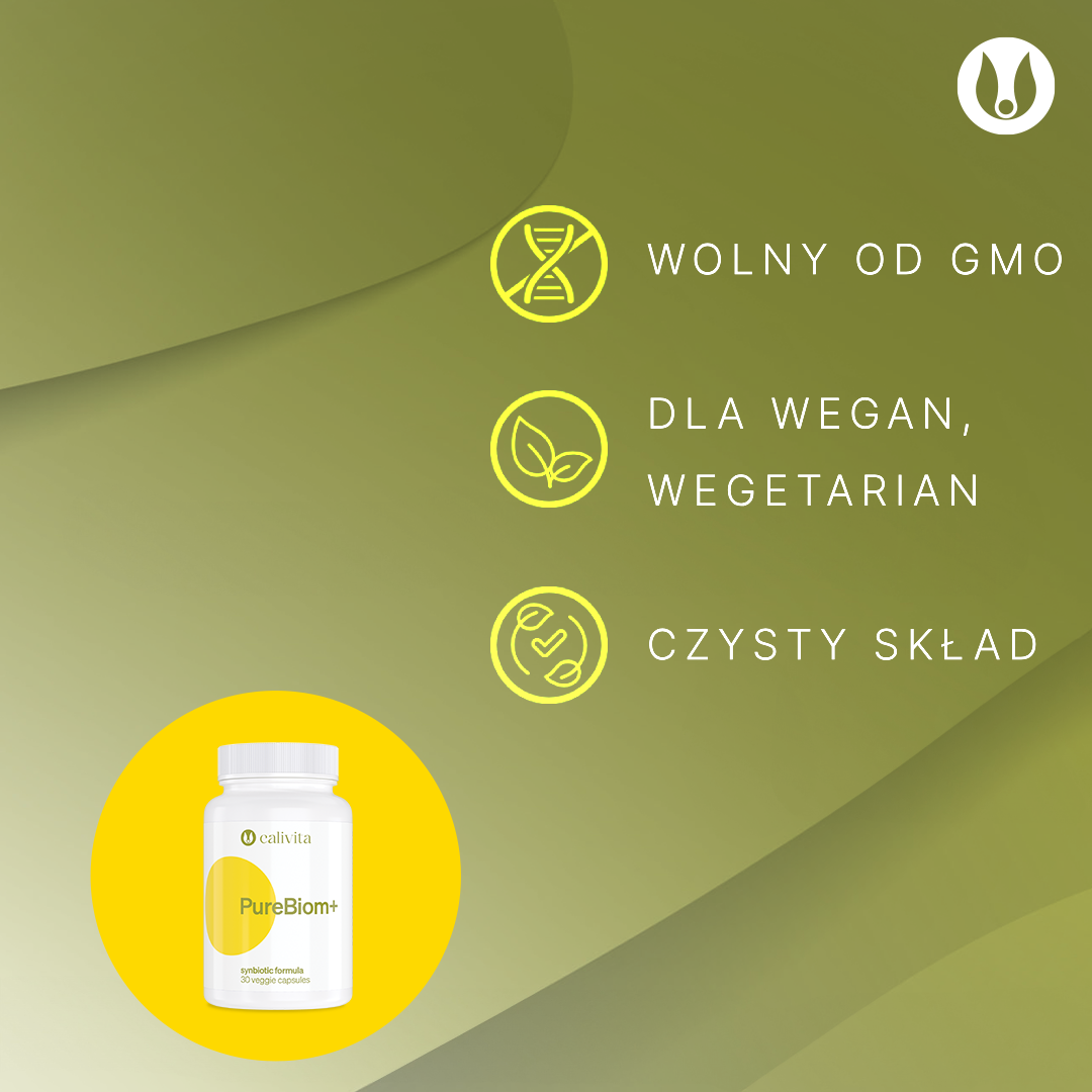 Wygoda stosowania - PureBiom+ jest stabilny w temperaturze pokojowej i nie wymaga przechowywania w lodówce. Czysty skład, złożone formuły i doskonała absorpcja! Produkty z serii Pure to bogactwo naturalnych składników o wysokiej przyswajalności, aby zmaksymalizować ich wykorzystanie przez organizm i zwiększyć skuteczność działania. Nie zawierają w składzie żadnych sztucznych dodatków, tj. konserwantów, substancji wypełniających, barwników, aromatów, substancji słodzących czy dodatku cukru, są wolne od substancji modyfikowanych genetycznie GMO. Produkty dostępne są w postaci kapsułek roślinnych, idealne również dla wegetarian, wegan. Produkty z czystymi składami to kompleksowe rozwiązania wspierające zdrowy styl życia i doskonała propozycja dla rosnącej liczby osób borykających z nietolerancjami pokarmowymi.